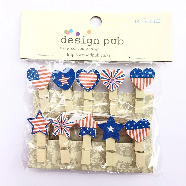 Bộ gồm 10 kẹp ảnh gỗ hình cờ Mỹ