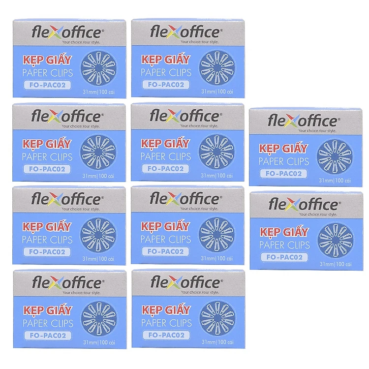 • Kẹp giấy Flexoffice FO-PAC02 (31mm) có đầu tam giác, đầu tròn.