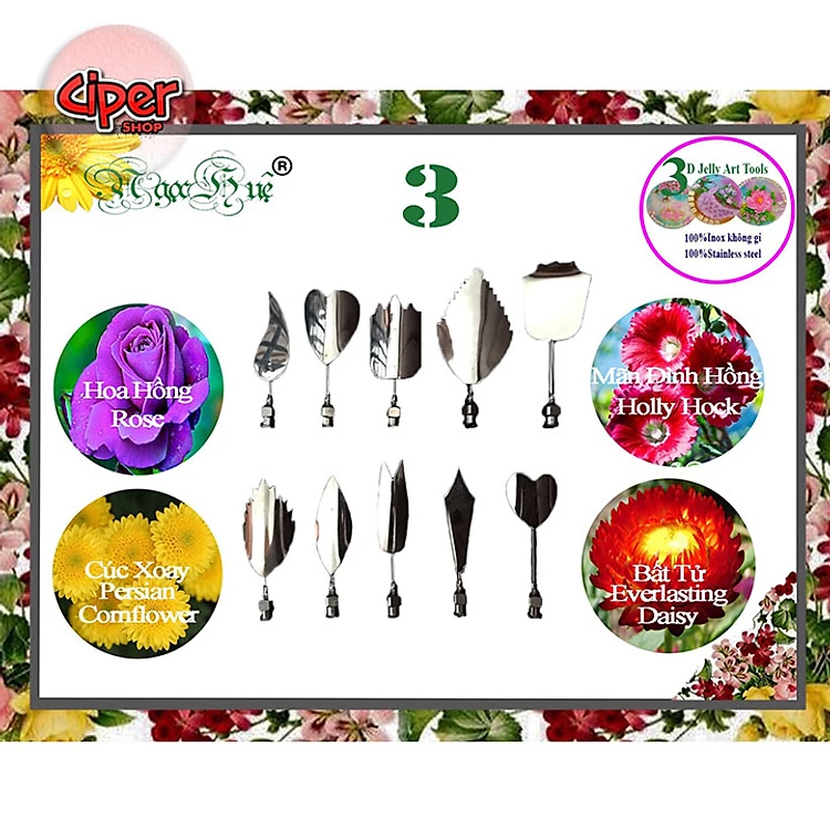 Bộ 10 Kim Làm Rau Câu 3D Hoa Hồng Mẫu Số 3