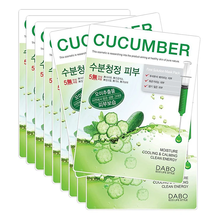 - Bộ 10 Miếng Đắp Mặt Nạ Dabo Dưa Leo Cao Cấp Hàn Quốc 8809351952660 là loại sản phẩm mặt nạ có xuất xứ từ Hàn Quốc, với chiết xuất tinh chất dưa leo được vì như thần dược dưỡng ẩm cho làn da của chị em.