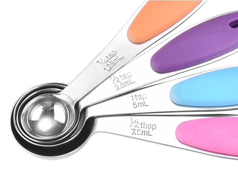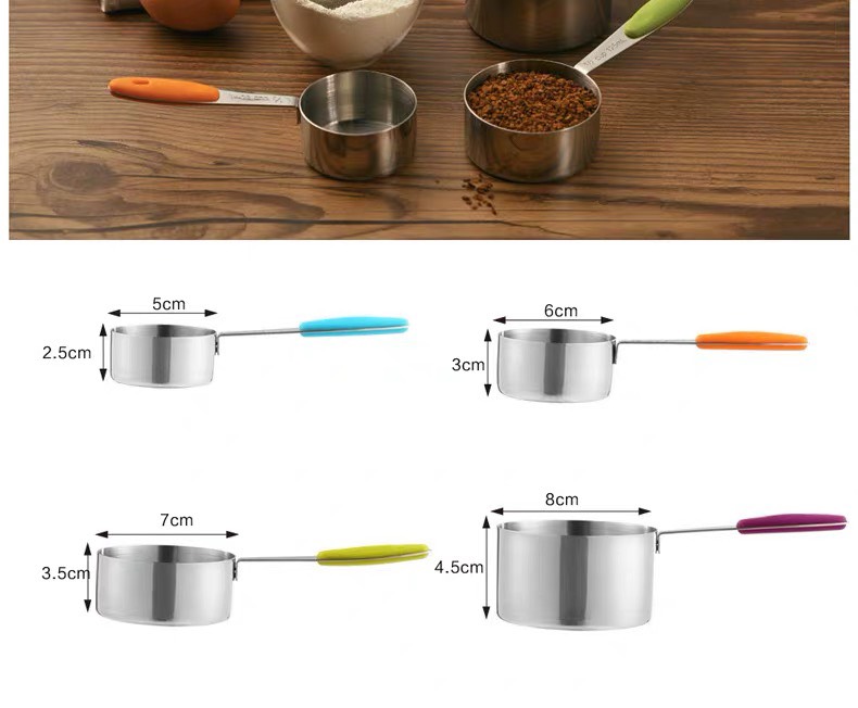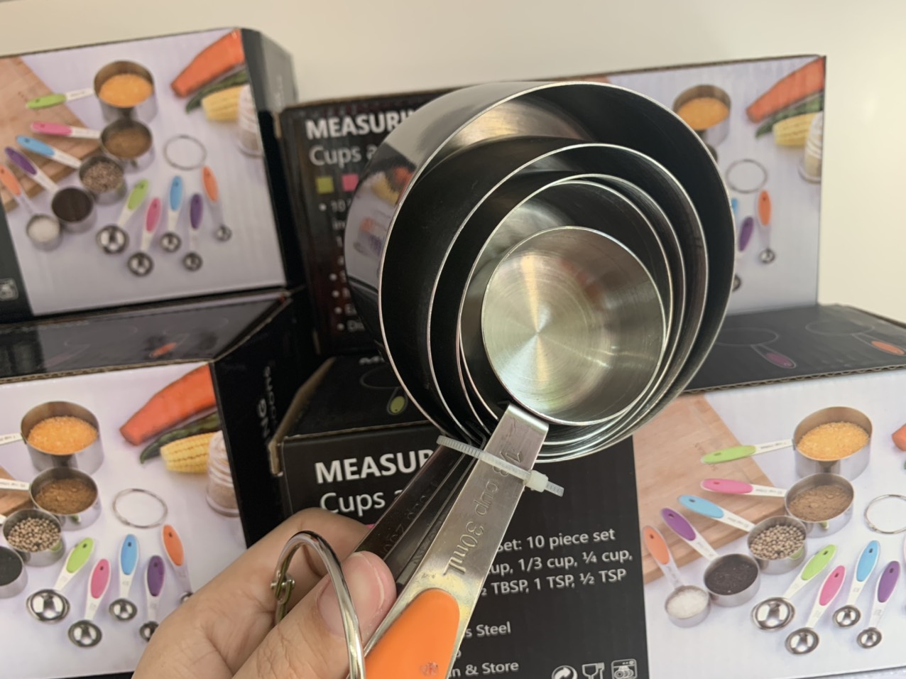Ưu điểm : tay cầm bọc silicon chống trơn trợt, số lượng được khắc sắc nét trên tay cầm, giúp công việc đo lường thực phẩm được chuẩn xác hơn, chất liệu thép không gỉ dễ dàng vệ sinh sau khi sử dung, thời gian sử dụng được lâu bền hơn các loại bằng nhựa khác