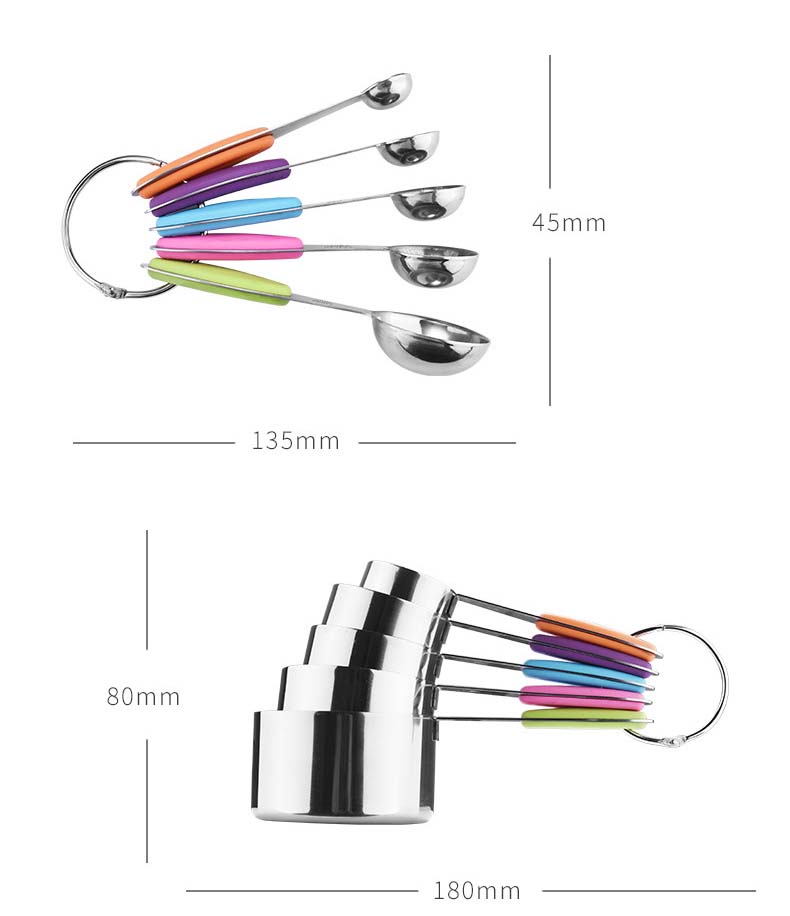 Bộ sản phẩm gồm 10 muỗng đo lường đáy tròn và đáy lỏm
