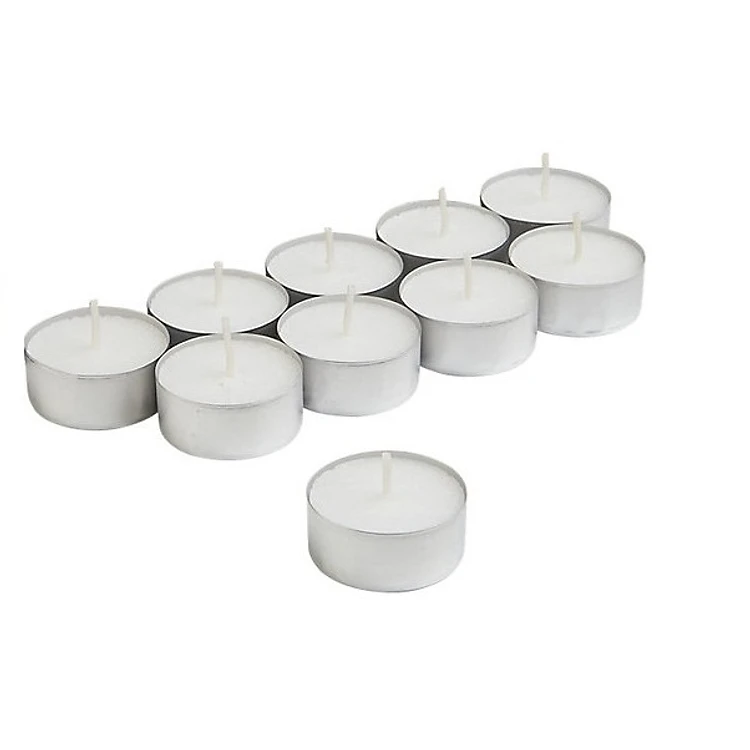 - Bộ 10 viên nến tealight cháy 4 tiếng được làm từ paraffin - nguyên liệu chính được ưa thích để sản xuất nến. Sáp paraffin dẻo chắc, không bị hòa tan trong nước và dễ bắt lửa. Chất liệu không tạo khói gây cay mắt, tuyệt đối an toàn cho sức khỏe.