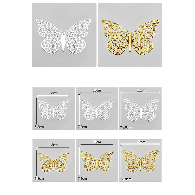 Bộ 12 con bướm dán tường kim loại cắt lớp dễ thương