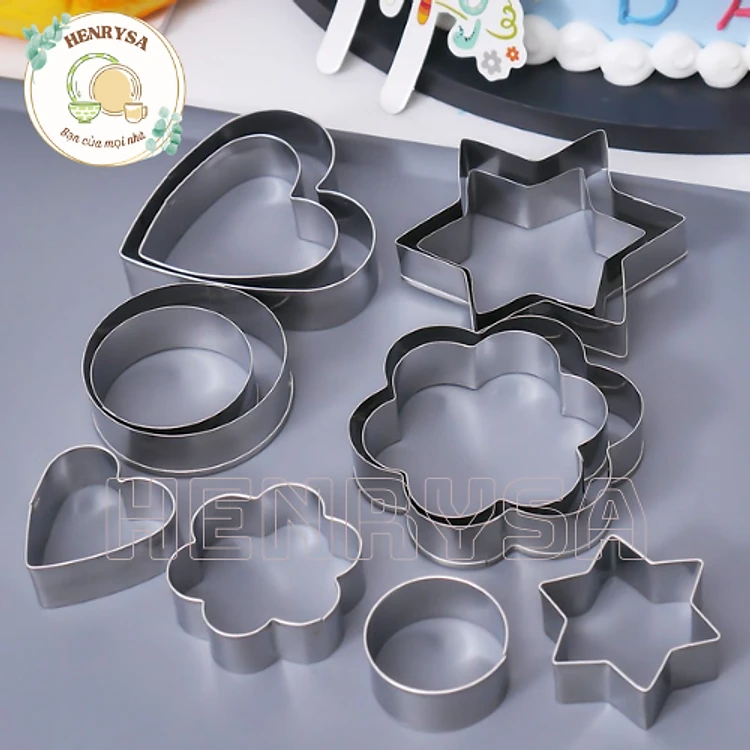 Bộ 12 khuôn tạo hình làm bánh kiểu dáng đáng yêu ngôi sao, trái tim, bông hoa và vòng tròn xinh xắn - Chính hãng HENRYSA
