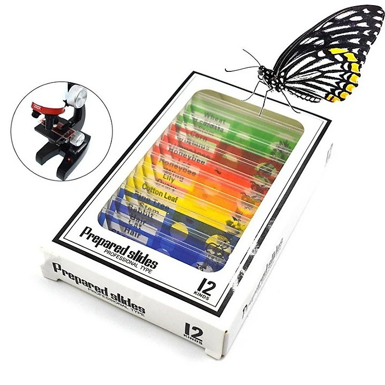 Bộ 12 tiểu bản mẫu vật của động thực vật dùng trên kính hiển vi - Hàng Chính Hãng