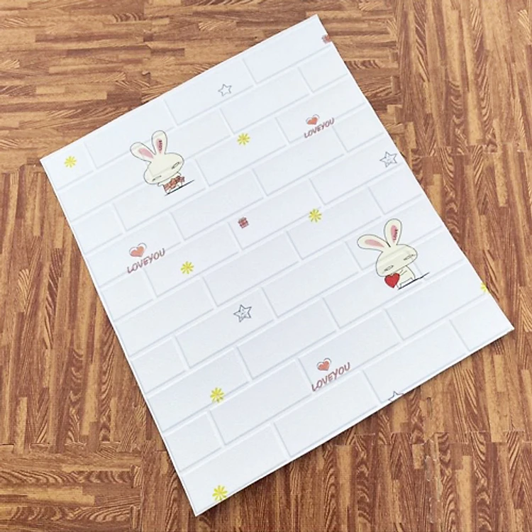 Bộ 15 Tấm Xốp Dán Tường 3D Hoạt Hình Thỏ Dễ Thương, Dày Dặn Chống Va Đập