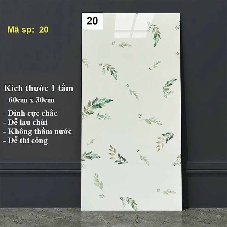 Bộ 15 Tấm Xốp Dán Tường 3D PVC Lá Xanh 60x30cm Keo Sẵn Dày 2,5mm Cao Cấp, Sang trọng