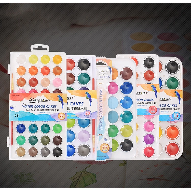 Bộ 16/28/36 màu nước Dạng Khay Tặng Kèm Bút Vẽ