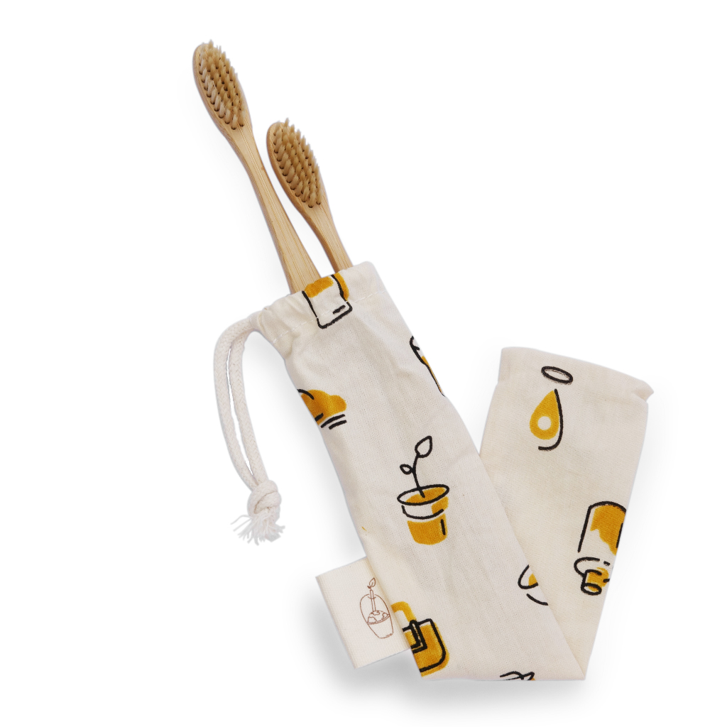 Bộ 2 Bàn Chải Tre Đánh Răng, Lông Mềm, Dài 20cm, Chất Liệu Tre Cao Cấp, thân thiện môi trường, eco-friendly, phân hủy tự nhiên