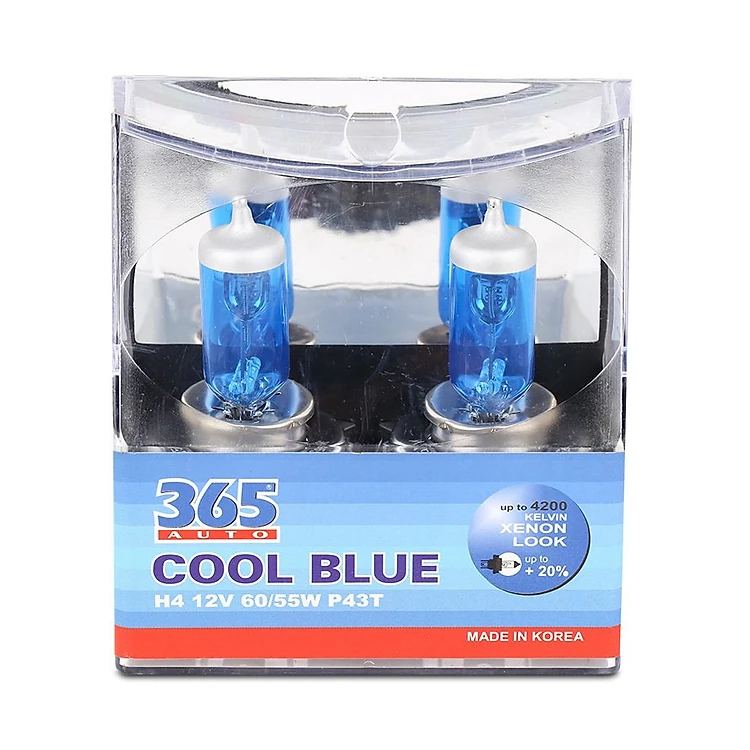 - Bộ 2 Bóng Đèn Ô Tô 365- Auto H4 Coolblue 12V sản xuất theo dây chuyền công nghệ hiện đại của Hàn Quốc. Nhiệt độ màu lên đến 4200 Kelvin, độ sáng cao hơn 20%.
