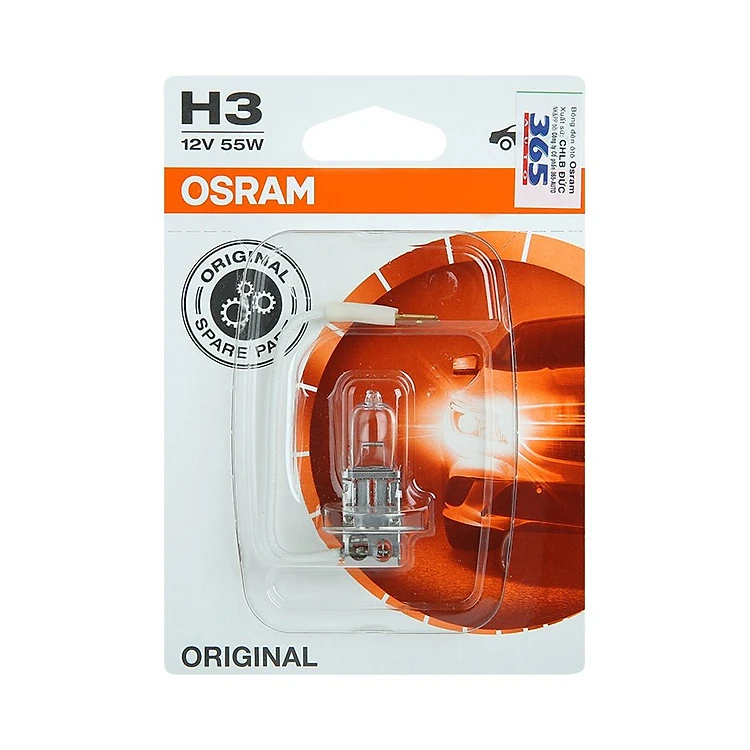 - Bộ 2 Bóng Đèn Osram H3 Original 12V là loại bóng đèn halogen có công suất 55W, đáp ứng được yêu cầu chiếu sáng tiêu chuẩn, đạt yêu cầu về chất lượng của OEM. Bóng đèn sử dụng nguồn điện 12V, chuyên cho xe hơi.
