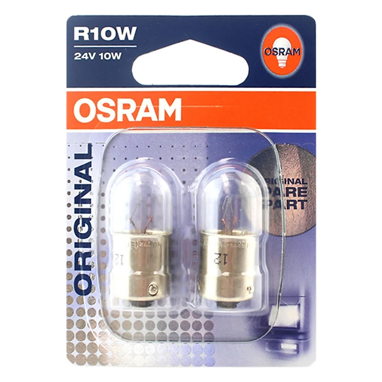 - Bộ 2 Bóng Đèn Xi Nhan Osram Truckstar R10W 24V là loại bóng gim 2 chân dùng thay thế bóng đèn phanh cho xe ô tô phù hợp với hầu hết các dòng xe phổ biến ở Việt Nam.