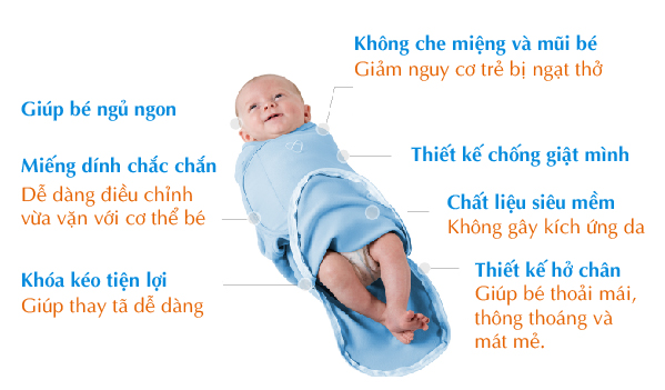 - Phần miếng dính của chăn quấn Summer được thiết kế rất an toàn, không gây tổn thương cho da của bé, không trơn tuột lùng bùng như quấn tã hay khăn bông. Đặc biệt, nhờ miếng dính mà mẹ có thể điều chỉnh chăn quấn sao cho vừa vặn với cơ thể của bé.