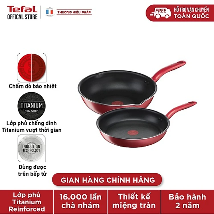 Bộ 2 chảo chống dính đáy từ Tefal So Chef dùng cho mọi loại bếp (chảo 24cm, 28cm) - Hàng chính hãng