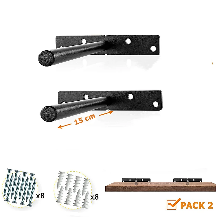 Bộ 2 chốt âm chữ T 15cm, pas âm đỡ kệ treo tường bằng thép đặc kèm phụ kiện vít tắc kê - Hàng chính hãng