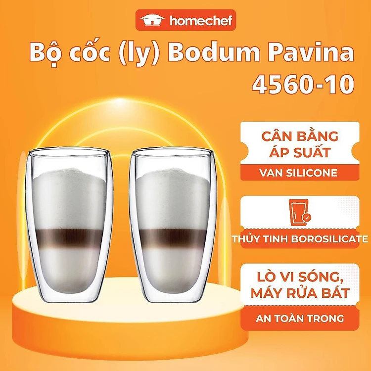 Bộ 2 cốc (ly) thủy tinh 2 lớp Bodum Pavina 4560-10, dung tích 450ml | Hàng chính hãng