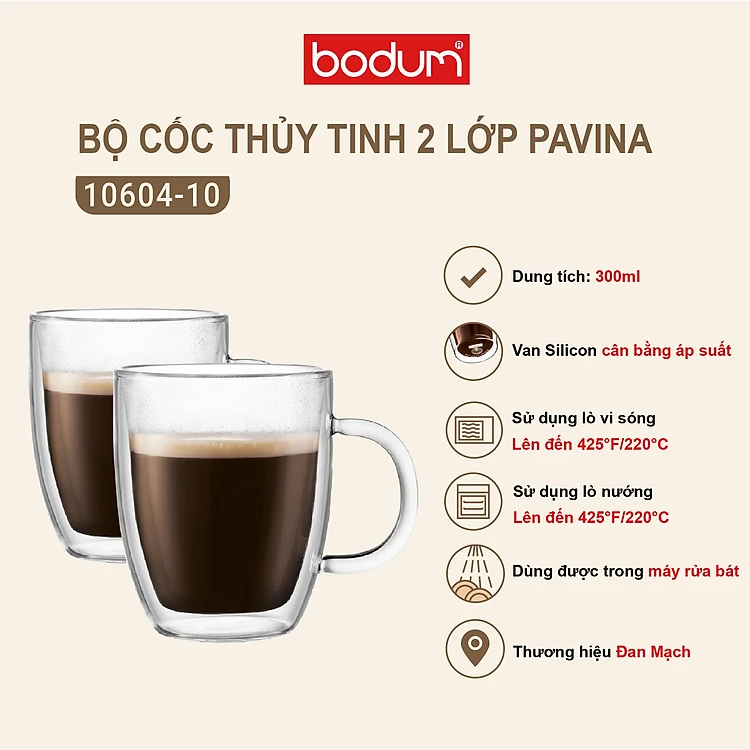 Bộ 2 cốc thủy tinh 2 lớp Bodum Bistro dung tích 300ml 10604-10