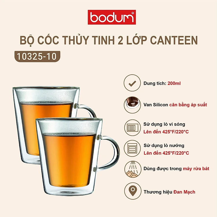 Bộ 2 cốc thủy tinh 2 lớp Bodum Canteen dung tích 200ml 10325-10
