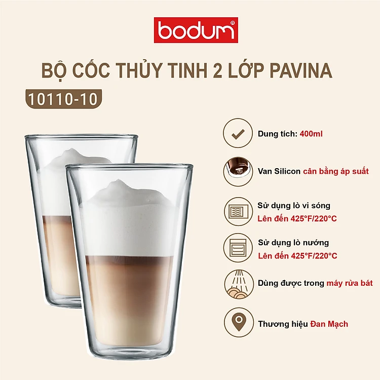 Bộ 2 cốc thủy tinh 2 lớp Bodum Canteen dung tích 400ml 10110-10