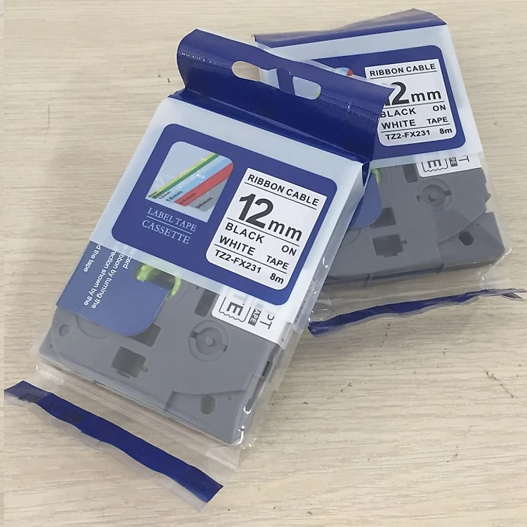 [ Bộ 2 cuộn] Nhãn TZ2-FX231 siêu dẻo - Chữ đen trên nền trắng 12mm - Hàng nhập khẩu