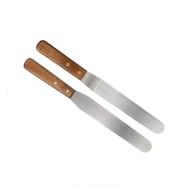 Bộ 2 dao chà láng thẳng và gấp khúc cán gỗ, dùng trang trí bánh kem