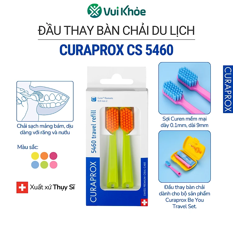 Bộ 2 đầu bàn chải Curaprox cho bộ du lịch Travel Set | Hộp 2 đầu chải CS 5460 | Mã SP 73360662