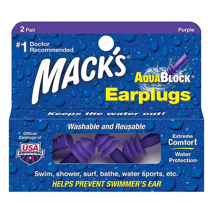 - Sản phẩm nút bịt tai Mack’s® AquaBlock® an toàn trong môi trường nước muối hoặc Clo.