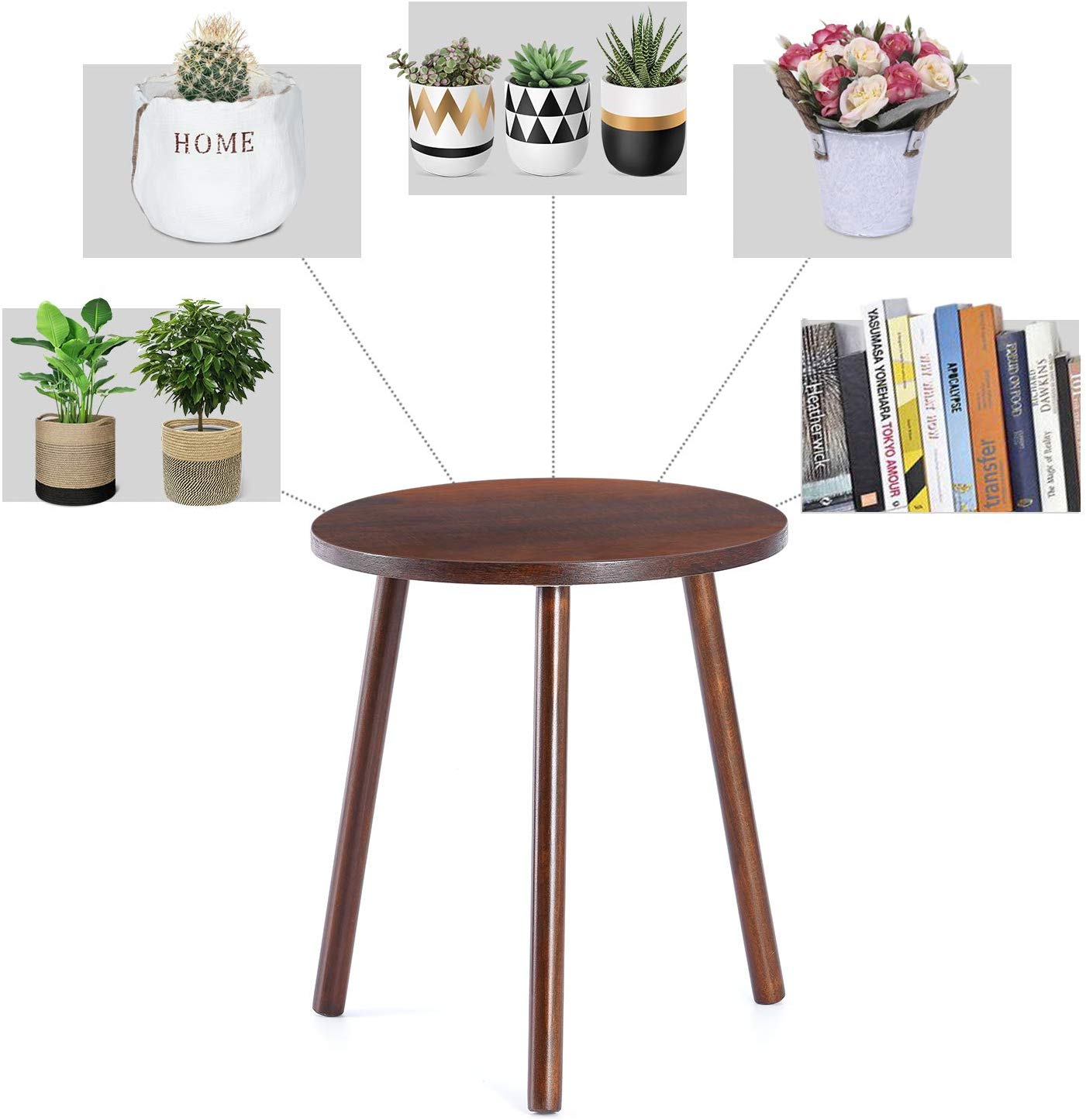 (Bộ 2) Đôn Gỗ Kệ Giá Tròn Nhỏ Đỡ Chậu Hoa Phong cách Mid-Century Bàn Trà Bàn Coffee Màu Nâu Đậm 40x30cm
