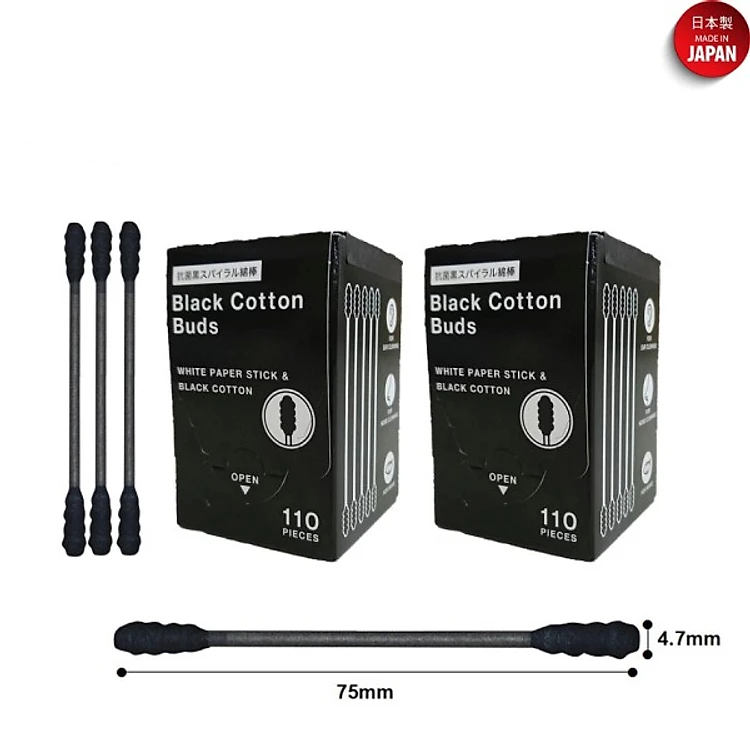 Bộ 2 hộp 110 tăm bông kháng khuẩn than hoạt tính Sanritsu - nội địa Nhật Bản