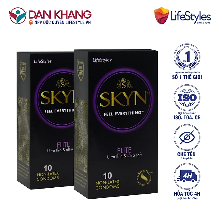 Bộ 2 Hộp Bao cao Su LifeStyles SKYN ELITE Non-latex Siêu Mỏng Siêu Mềm Cao Cấp 10 bao