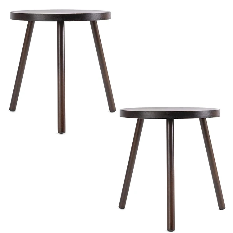 (Bộ 2) Kệ Giá Tròn Nhỏ Đỡ Chậu Hoa Đôn Gỗ Phong cách Mid-Century Bàn Trà Bàn Coffee Màu Đen 40x30 cm