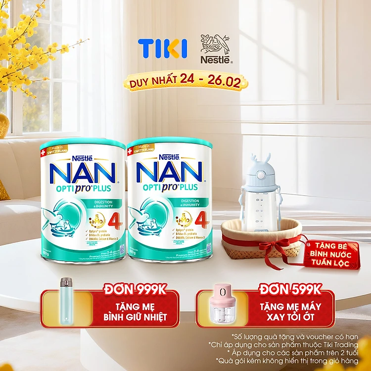 [Tặng Bình nước tuần lộc] Bộ 2 lon Sữa bột Nestlé NAN OPTIPRO PLUS 4 800g/lon với 5HMO Giúp tiêu hóa tốt + Tăng cường đề kháng - Bé 2-6 tuổi