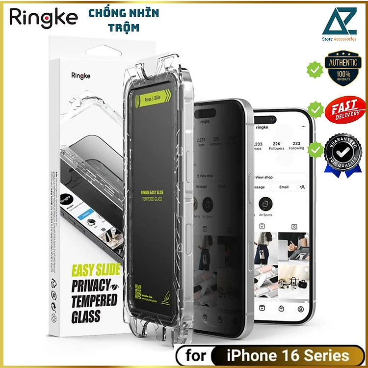 Bộ 2 Miếng Dán Cường Lực Chống Nhìn Trộm RINGKE Easy Slide Tempered Cho iPhone 16/ 15/ 16 Plus/ 15 Plus/ 16 Pro/ 16 ProMax_ Hàng chính hãng