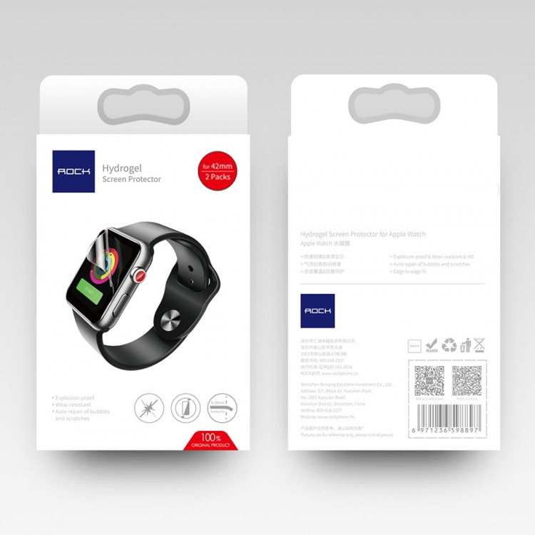 Bộ 2 miếng dán màn hình silicon chống trầy cho Apple Watch 40mm hiệu Rock Hydrogel (chống trầy, chống bụi, chống thấm, độ trong tuyệt đối) - Hàng chính hãng