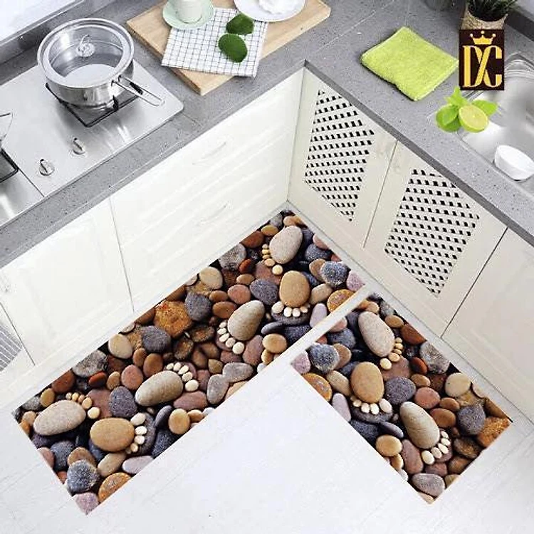Bộ 2 miếng thảm bếp 3D chống trơn bám sàn hình Chân đá siêu đẹ