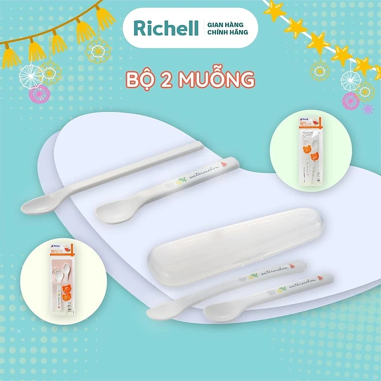 Bộ 2 muỗng ăn dặm kèm hộp Richell Nhật Bản | Baby