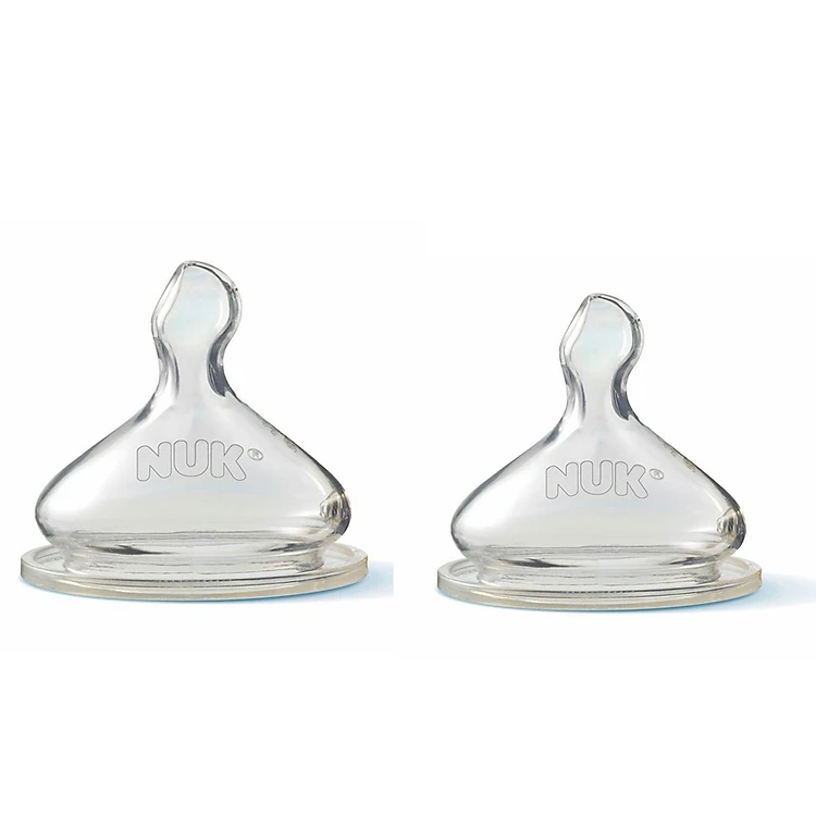 - Bộ 2 Núm Ti Silicone S1 Nuk NU66057 (Size L) với thiết kế lỗ tiết sữa ở mặt trên, sữa sẽ được đưa lên vòm họng và hòa cùng với enzyme nước bọt trước khi nuốt để trẻ dễ tiêu hóa, tránh bị sặc do sữa đi thẳng vào họng.