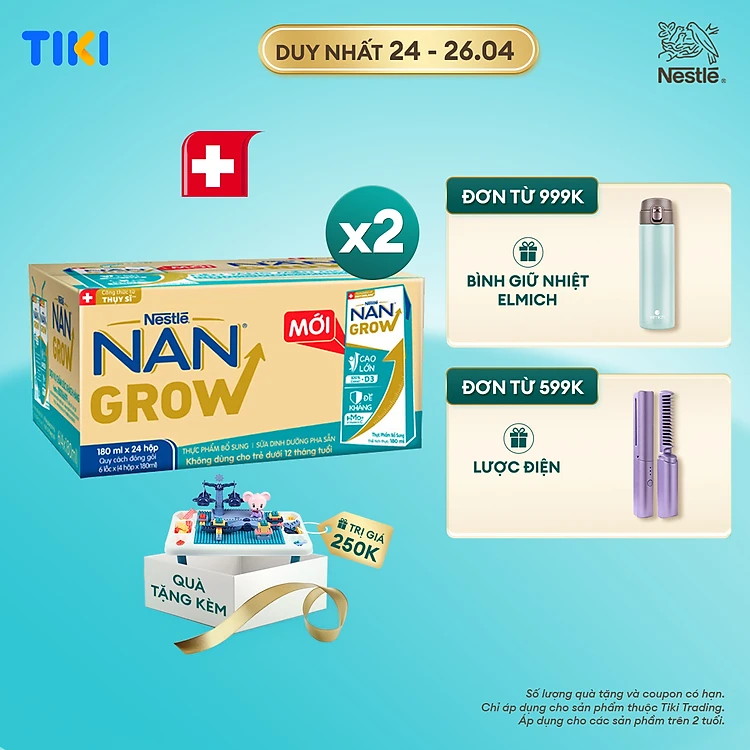 Bộ 2 Thùng 24 hộp Sữa pha sẵn Nestlé NANGROW sữa mát công thức từ Thụy Sĩ 6(4 x 180ml) - (Bé từ 1 tuổi)