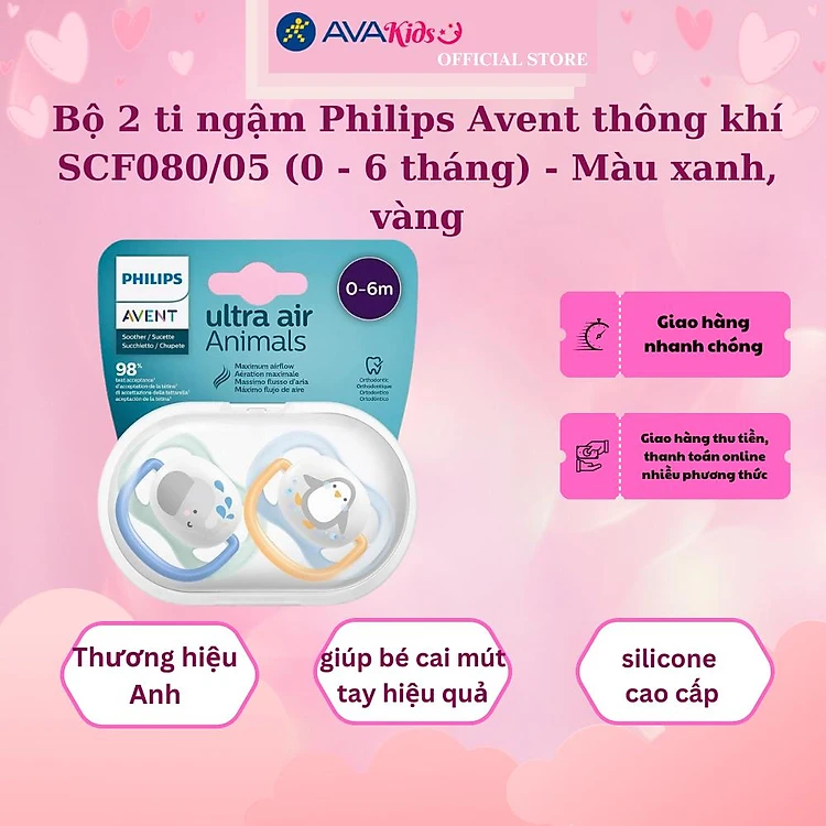 Bộ 2 ti ngậm Philips Avent thông khí SCF080/05 (0 - 6 tháng) - Màu xanh, vàng