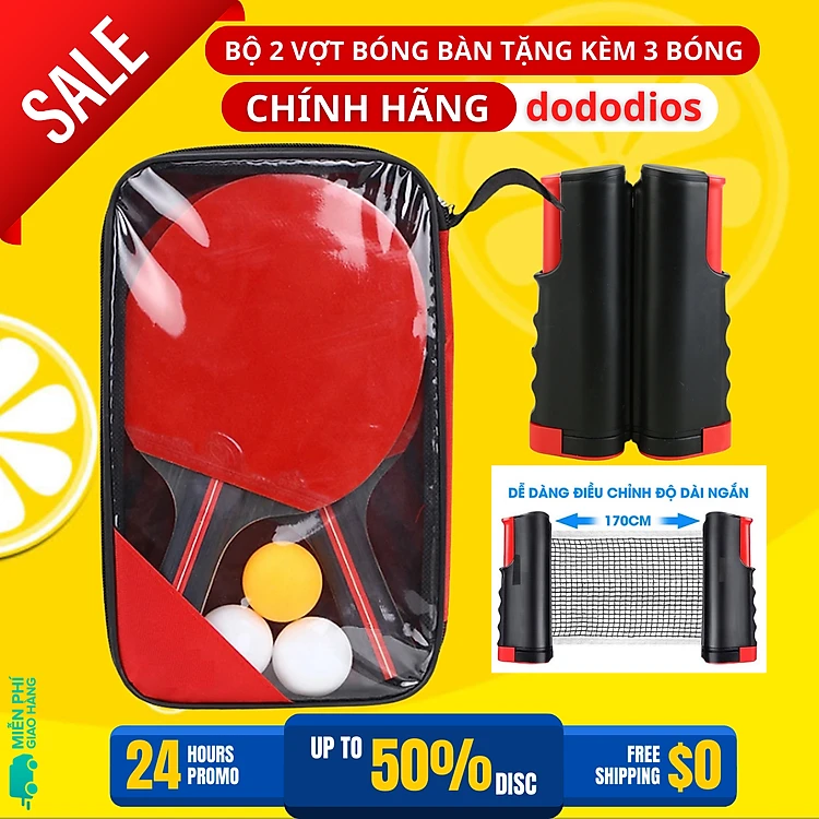 Bộ 2 vợt bóng bàn tặng kèm 3 bóng, cọc lưới rút chính hãng dododios GF005TS + Trụ Lưới Bóng Bàn Rút Gọn Chính Hãng dododios Chất Liệu ABS Cao Cấp Chiều Dài Điều Chỉnh Tới 1,7m Vừa Bàn Bóng Bàn