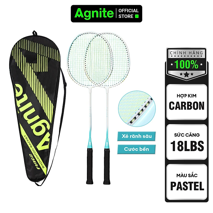 Bộ 2 vợt cầu lông Agnite chính hãng, hợp kim cacbon siêu bền, khớp chữ T, thiết kế khung rãnh sâu, màu pastel - FH102