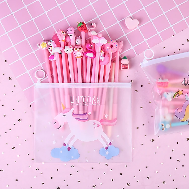 Bộ 20 cây viết bút gel hoạt hình kèm túi đựng