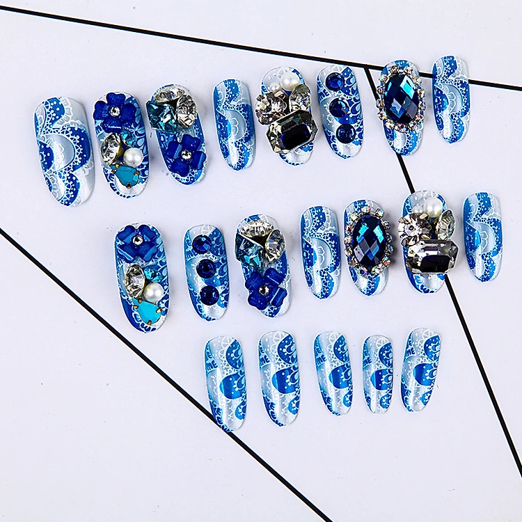 Bộ 24 móng tay giả đính đá (SF123) kèm thun lò xo cột tóc màu ngẫu nhiên tiện lợi ( Mẫu mới )