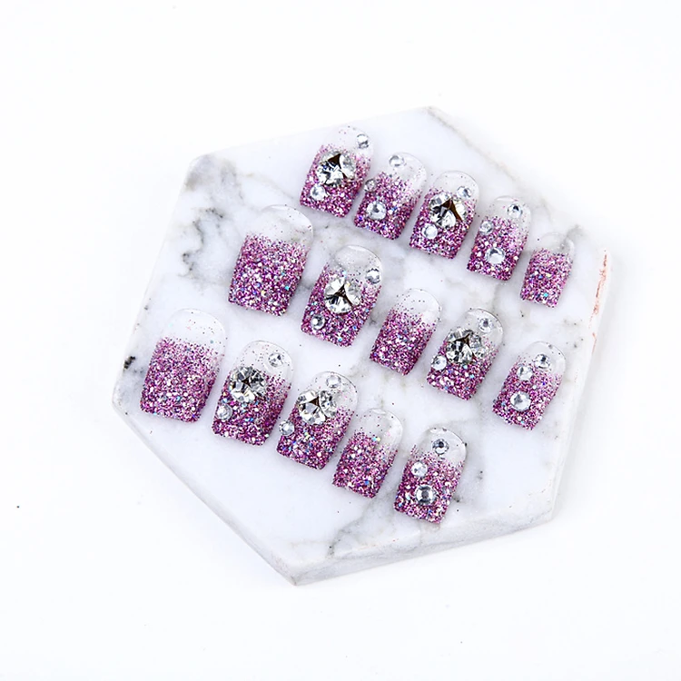 Bộ 24 móng tay giả đính đá (SHA004) kèm thun lò xo cột tóc màu ngẫu nhiên tiện lợi ( Mẫu mới )