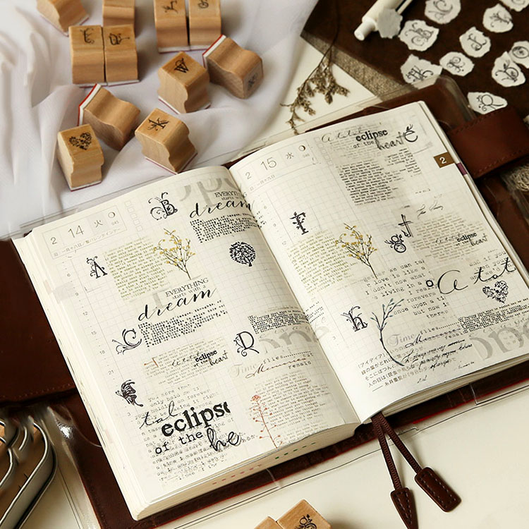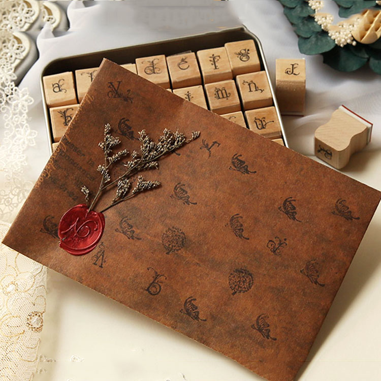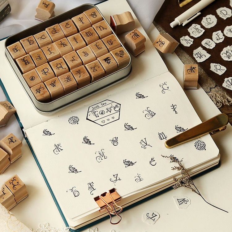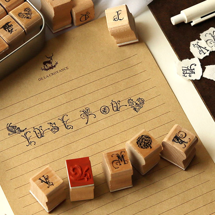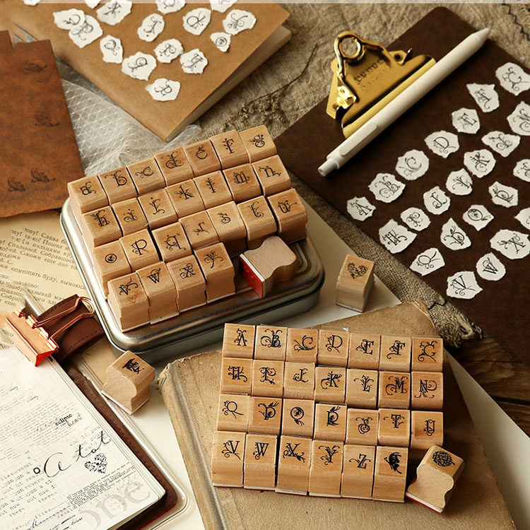 Dấu gỗ được khắc theo chữ cái alphabet cách điệu hoa