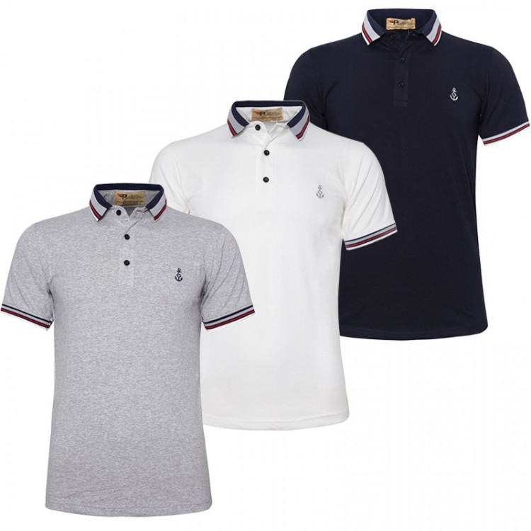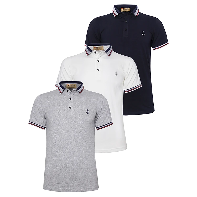 Bộ 3 Áo thun polo nam cổ bẻ phối bo AHT07 (Trắng, xám, xanh đen)