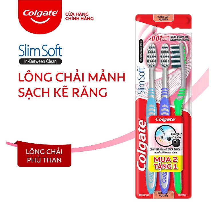 Bộ 3 Bàn chải Colgate Slimsoft Between Charcoal lông chải mềm mảnh xen sợi phủ than hoạt tính