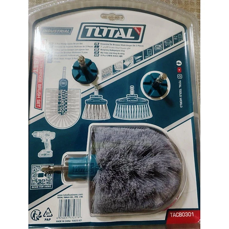 BỘ 3 BÀN CHẢI SỢI CỨNG 2.5 INCH, SỢI MỀM3.5 INCH VÀ SỢI DẺO 4 INCH TACB0301 TOTAL -HÀNG CHÍNH HÃNG