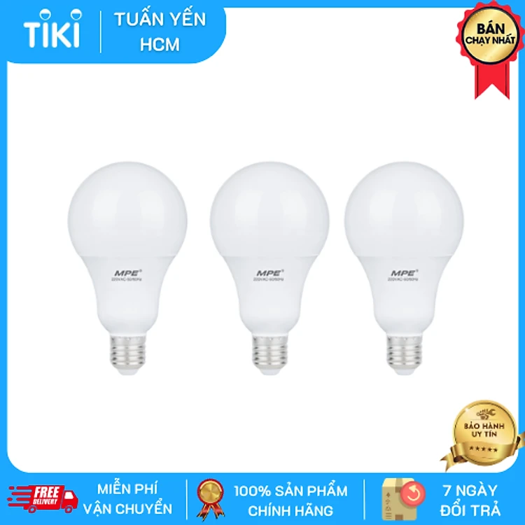 Bộ 3 Bóng Đèn LED Bulb MPE 7W 6000-6500K E27 Ø60 - Ánh sáng trắng